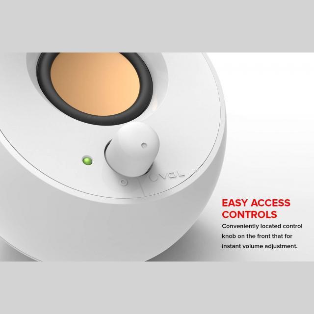 Creative Pebble е елегантна куполообразна 2.0 аудио система, която изглежда перфектно във всеки дом и офис. Отличава се с 45° наклон на говорителите за подобрена аудио прожекция и се захранва от един USB кабел за безпроблемно музикално забавление.